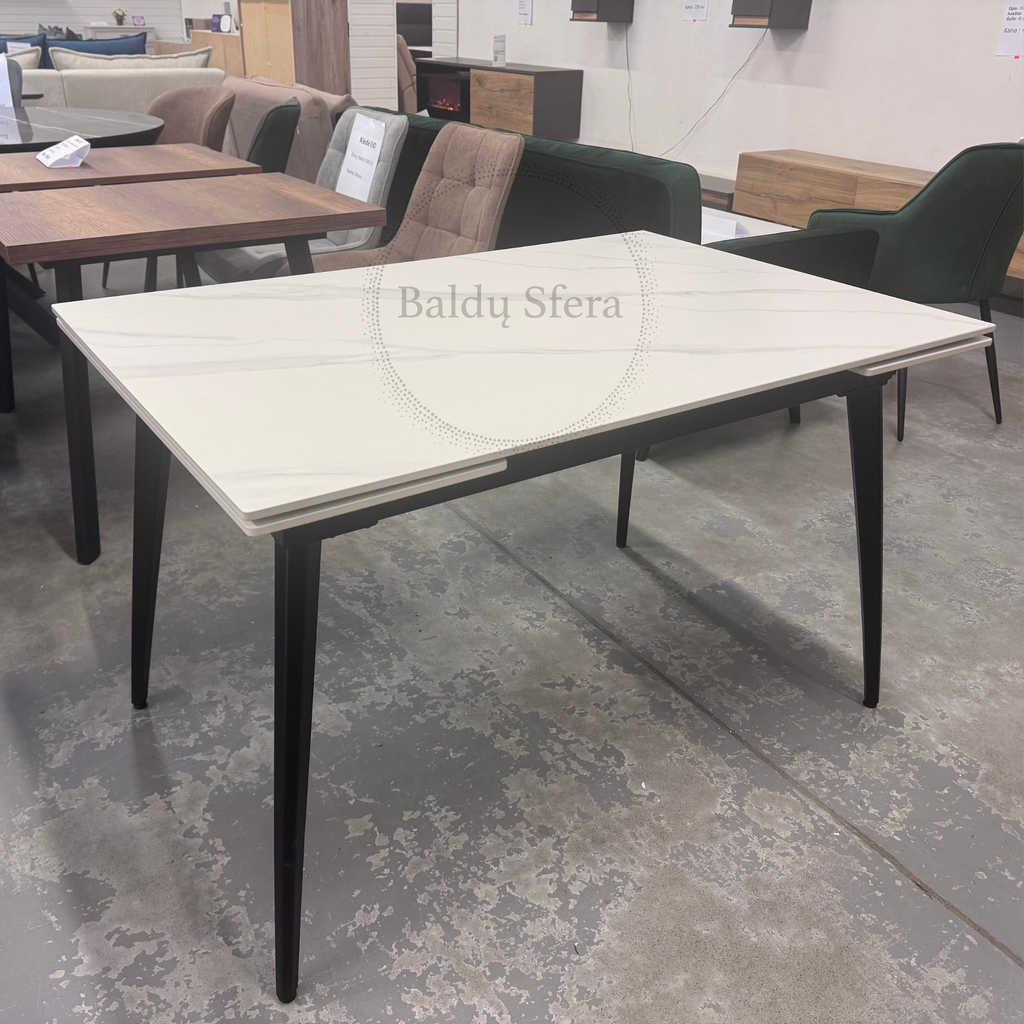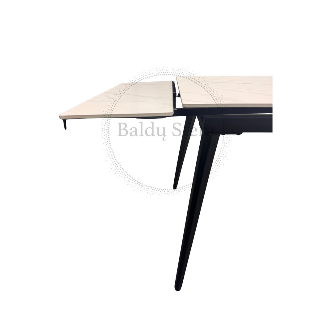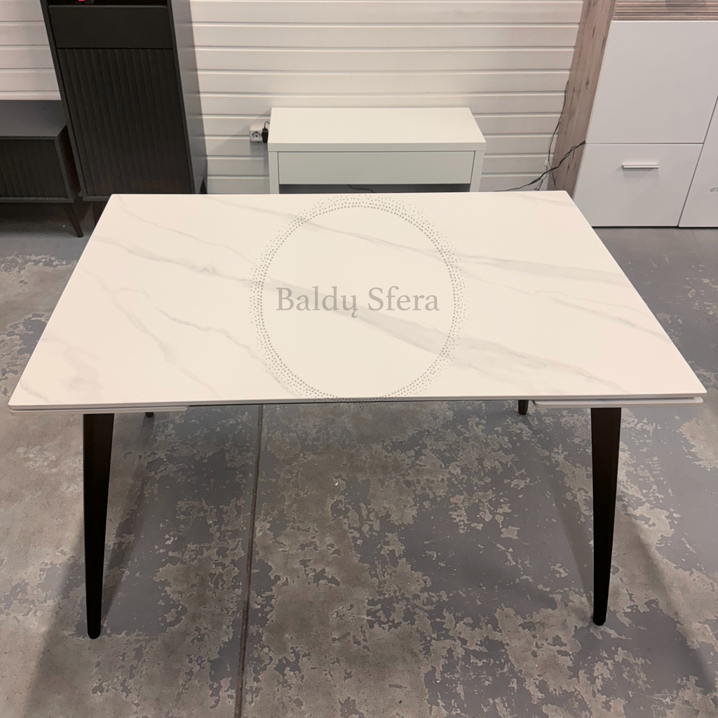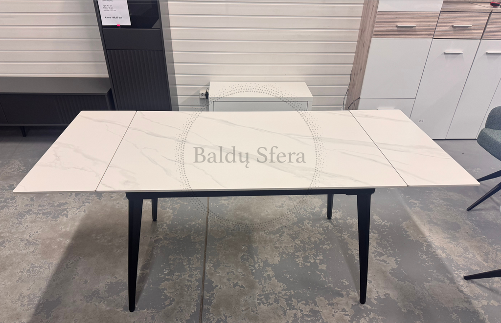 Nuotraukose stalviršis gali šiek tiek skirtis nuo realios spalvos dėl apšvietimo – gyvai stalas yra baltas su subtiliu marmuro raštu.
