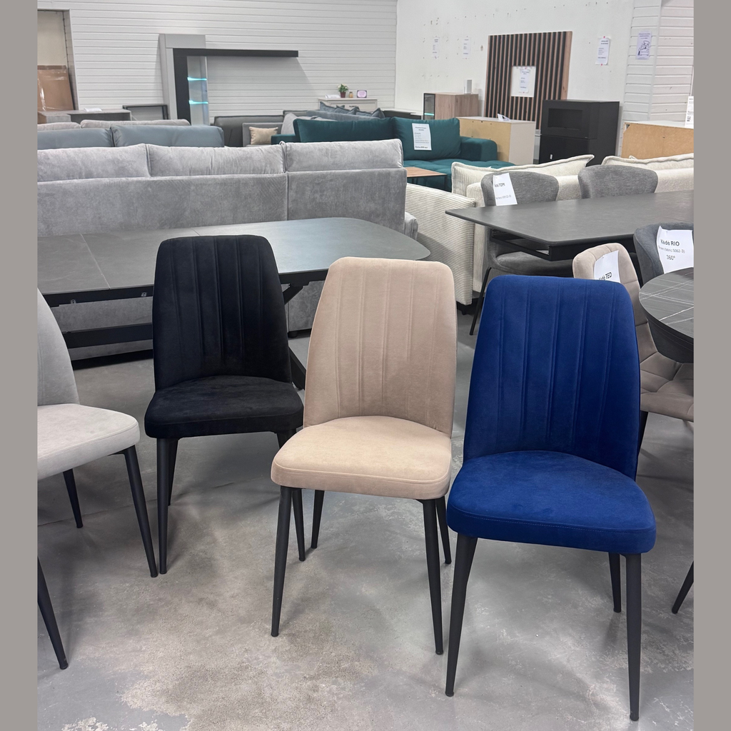 Stilinga ir universali kėdė VAREL – tai puikus pasirinkimas ieškantiems modernaus dizaino ir komforto derinio. Aksominės tekstūros audinys ne tik suteikia prabangos pojūtį, bet ir malonus liesti bei lengvai prižiūrimas. Juodos metalinės kojelės suteikia baldui elegancijos bei užtikrina stabilumą ir ilgaamžiškumą.