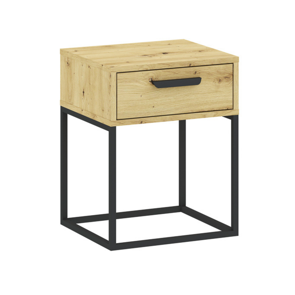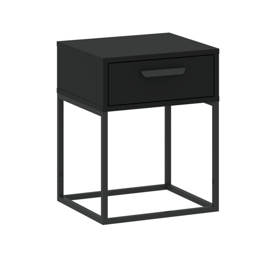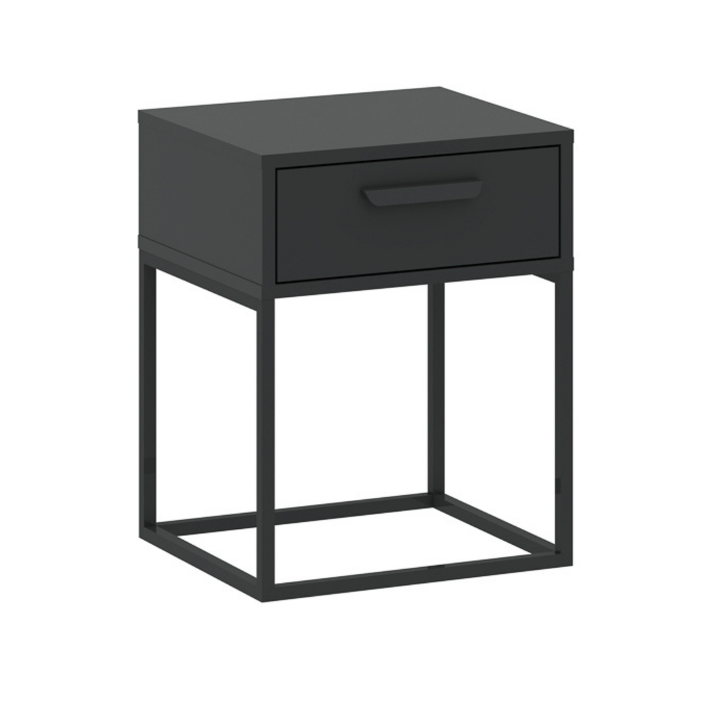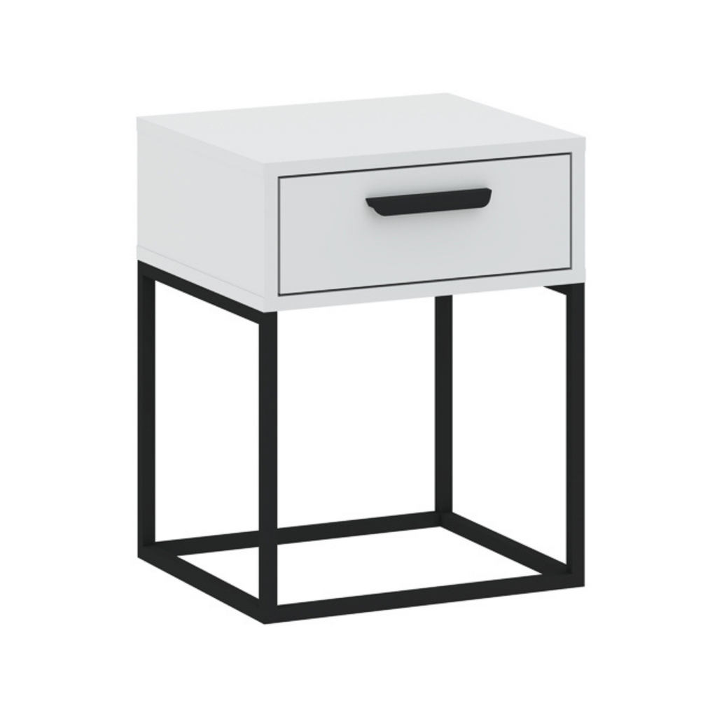 Šiuolaikiško dizaino naktinė spintelė iš CADRO kolekcijos. Balta matinė spalva su tvirtu juodo metalo rėmu sukuria modernų ir stilingą baldą, tinkantį tiek miegamojo, tiek jaunimo kambariui. Kompaktiška, bet talpi — stalčius leidžia patogiai susidėti būtiniausius daiktus prie lovos.
