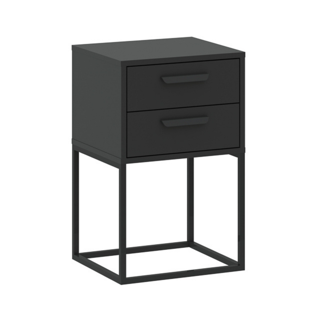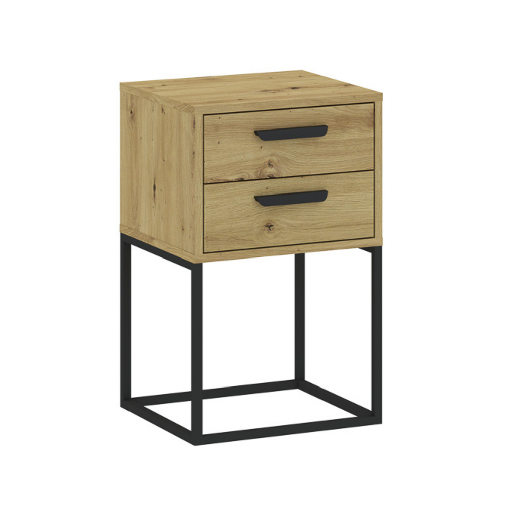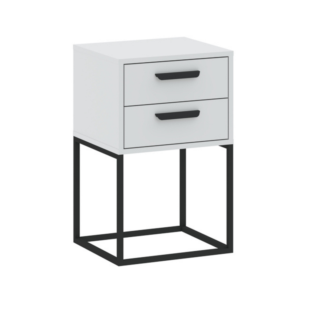 Modernus naktinis staliukas su dviem talpiais stalčiais iš CADRO kolekcijos. Minimalistinis dizainas ir tvirtas metalinis rėmas idealiai dera tiek šiuolaikiniame, tiek industriniame interjere. Stalčiai patogūs smulkiems daiktams susidėti, o kompaktiškas dydis leidžia pritaikyti šį baldelį net ir mažesnėse erdvėse.