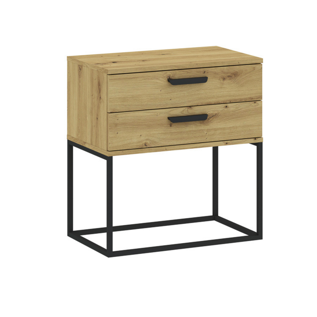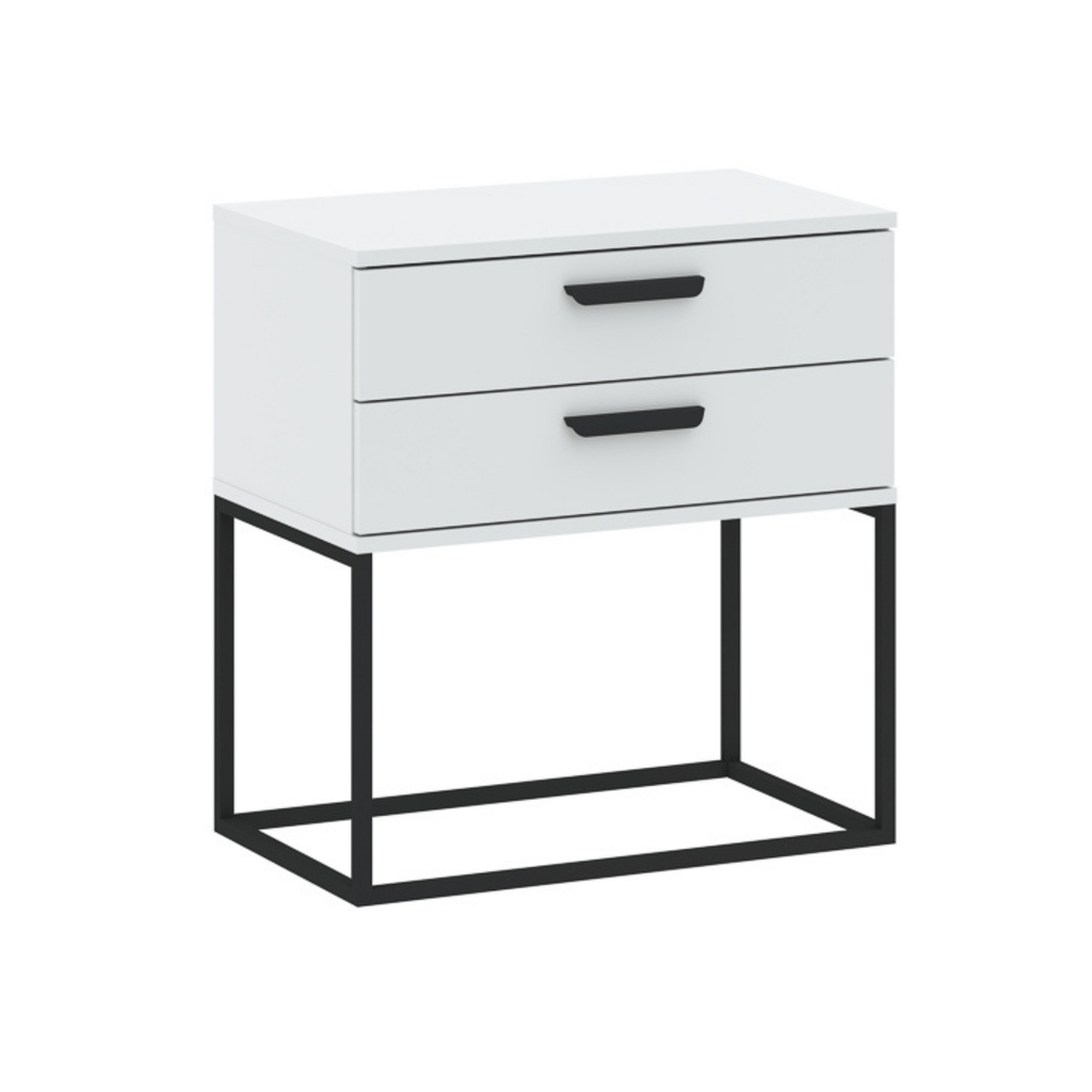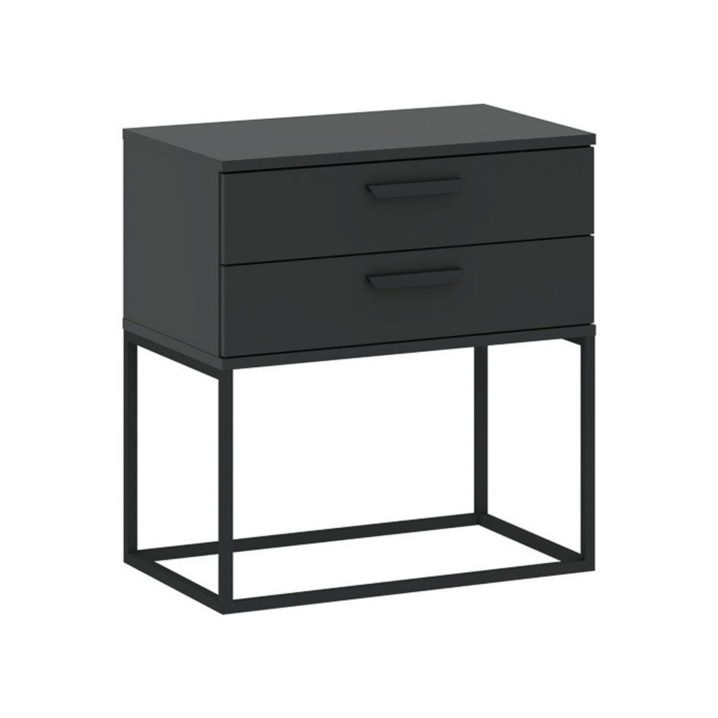 Erdvus ir funkcionalus naktinis staliukas su dviem stalčiais iš CADRO kolekcijos. Tvirtas juodo metalo rėmas užtikrina stabilumą, o minimalistinis dizainas puikiai dera šiuolaikiškame ar industriniame interjere. Du talpūs stalčiai leidžia patogiai laikyti būtiniausius daiktus, todėl šis baldas puikiai tinka šalia lovos ar kitose namų erdvėse.