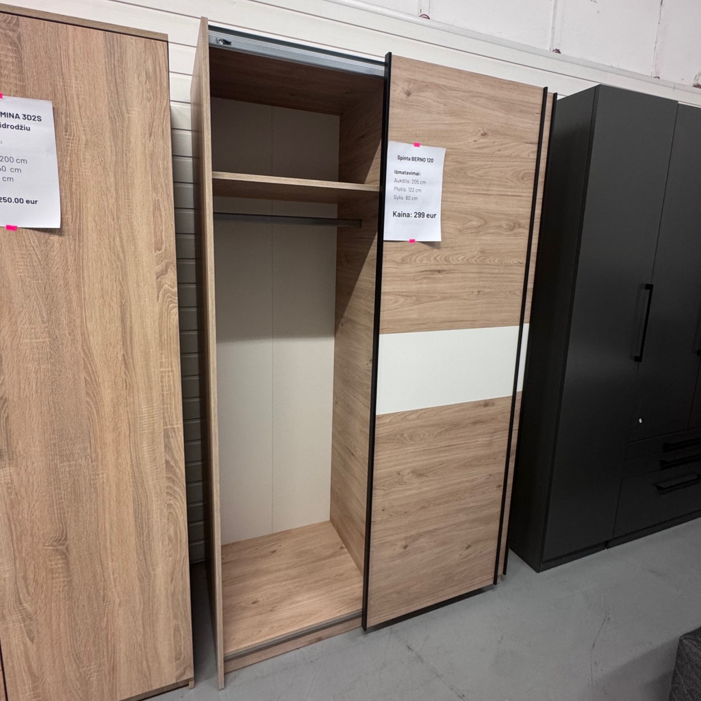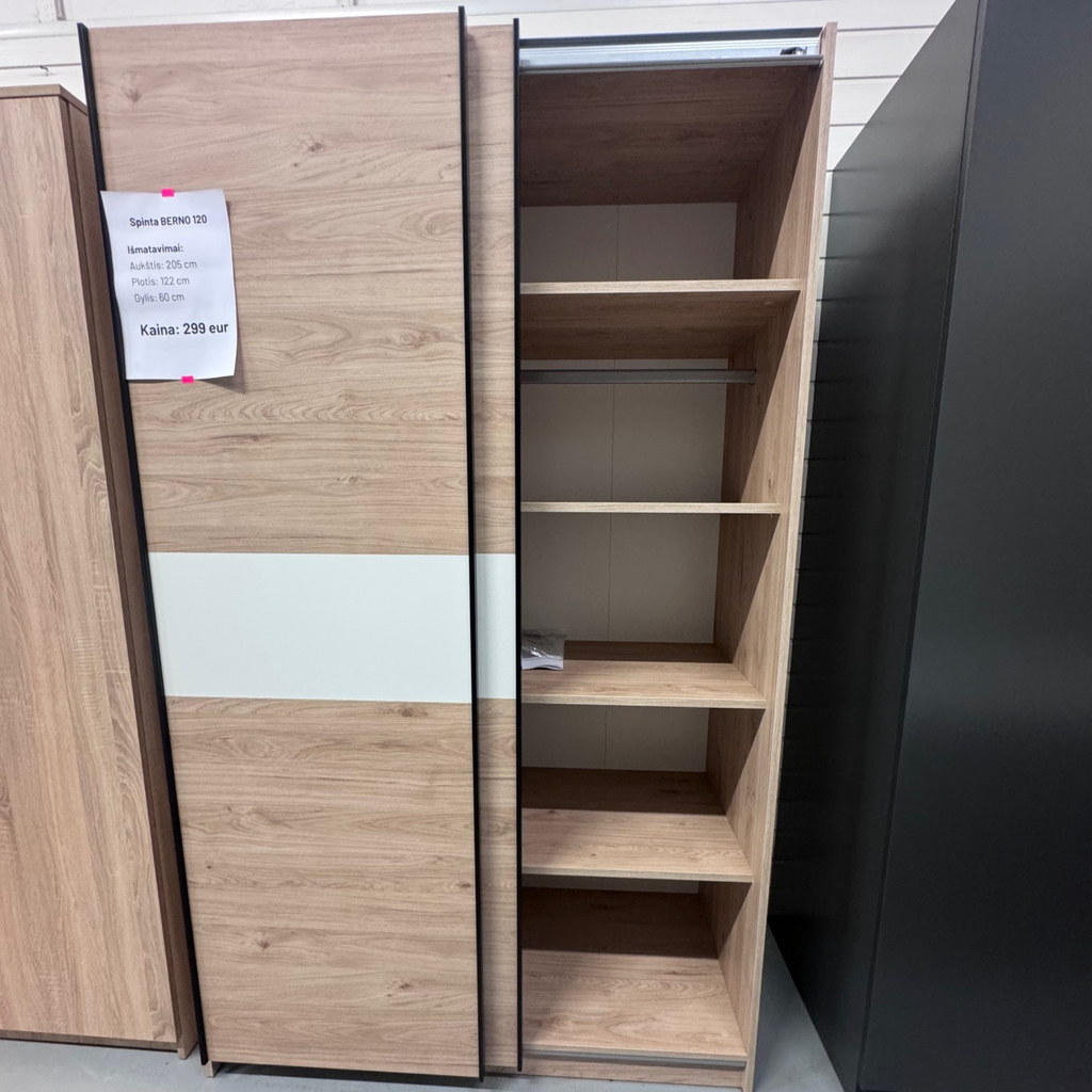 Moderni ir funkcionali spinta BERNO yra baldas, kuris padės sukurti tvarkingą ir jaukią erdvę. Ąžuolo imitacijos dekoras su horizontalia šviesia juosta suteikia spintai subtilaus kontrasto, o švarios linijos derės tiek šiuolaikiniame, tiek klasikiniame interjere.