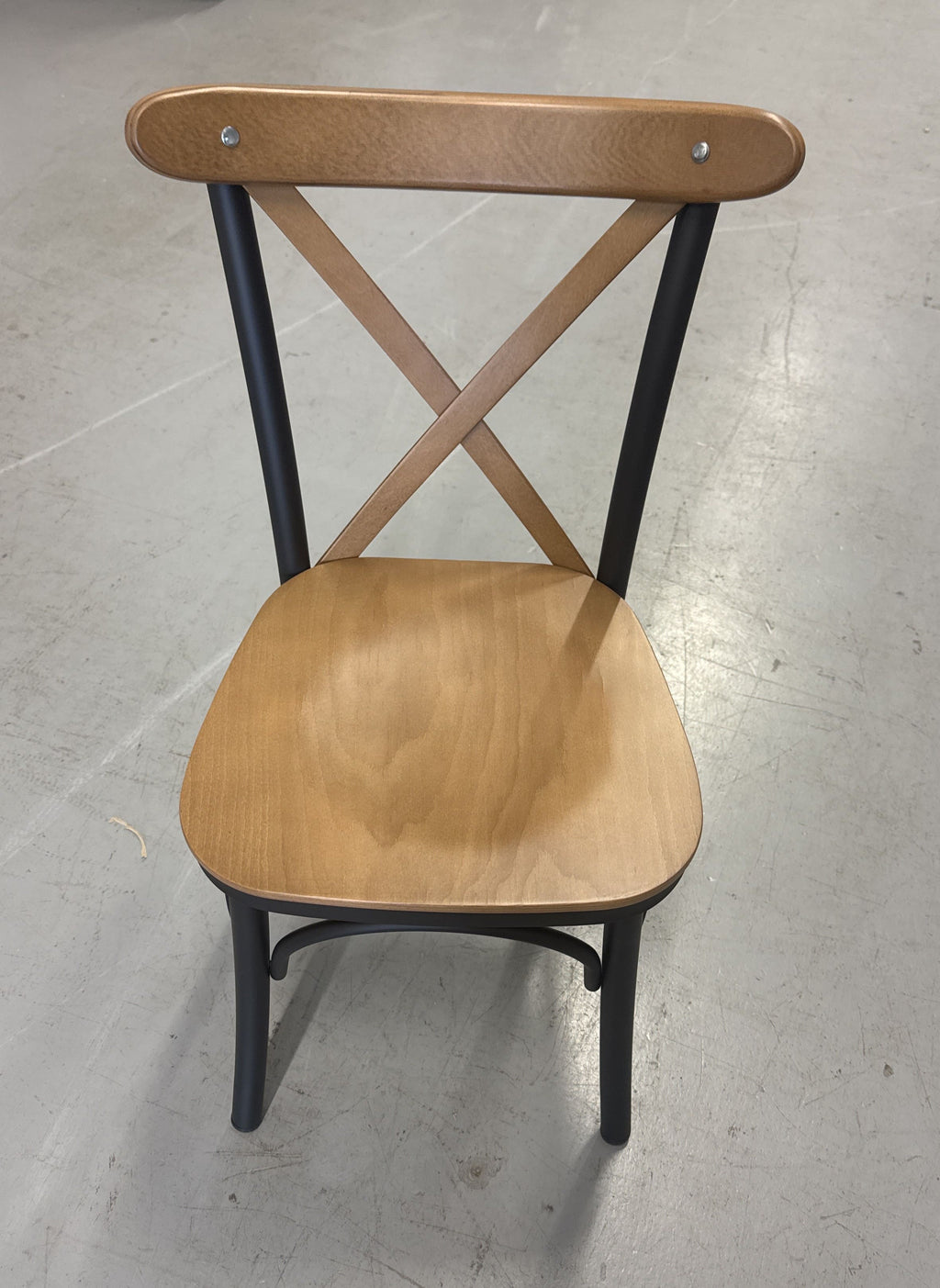 Komplekte taip pat rasite 4 kėdes NTONER, kurios idealiai dera prie stalo dizaino. Tvirtos metalinės kojos, medžio imitacijos sėdimoji dalis ir „X“ formos atlošas užtikrina patogumą bei stilių.