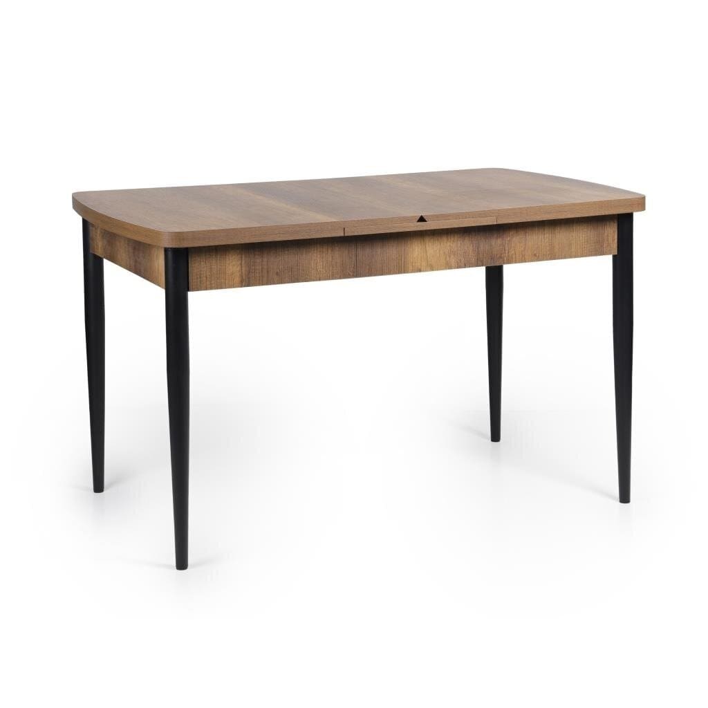 Modernus ir funkcionalus stalas LUMEN – puikus pasirinkimas tiek kasdieniams pietums, tiek jaukiems vakarams su šeima ar draugais. Natūralaus medžio spalvos stalviršis (132x80 cm) suteikia jaukumo pojūtį, o juodai dažytos metalinės kojos sukuria šiuolaikišką kontrastą. Stalas prireikus išsiskleidžia iki 172 cm ilgio, todėl patogiai sutalpinsite daugiau svečių.